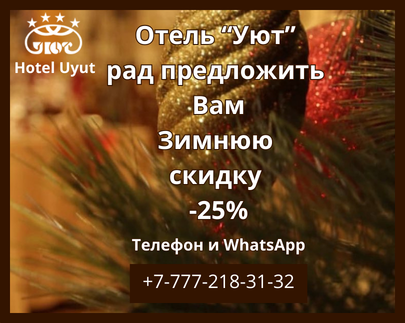 Алматы – удивительный город, жемчужина древней и современной Республики Казахстан, привлекающая своим сиянием людей со всего мира. Приветствуем вас на официальном сайте гостиницы «Уют - одной из лучших в Южной столице Казахстана! У нас вы сможете разместиться комфортно, уютно и действительно недорого.